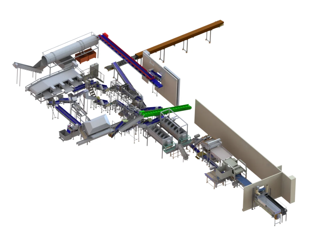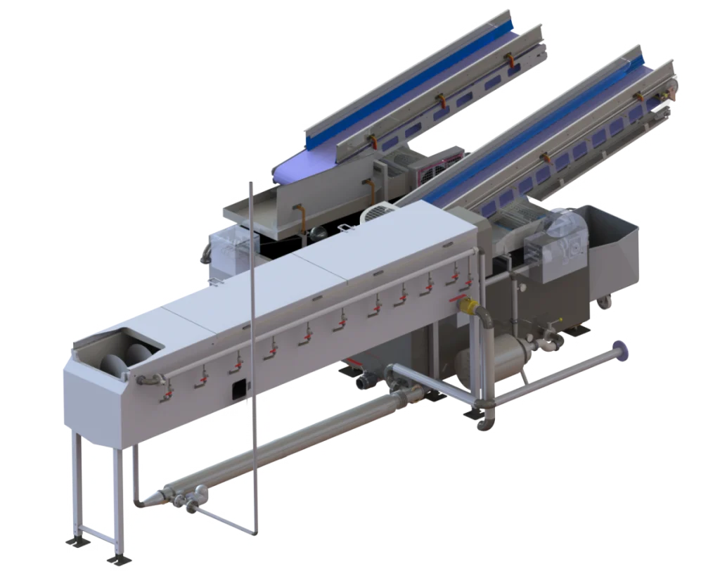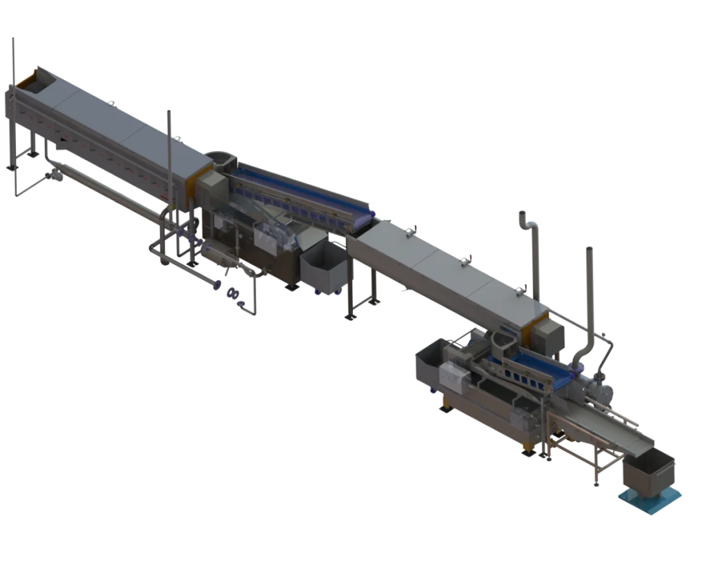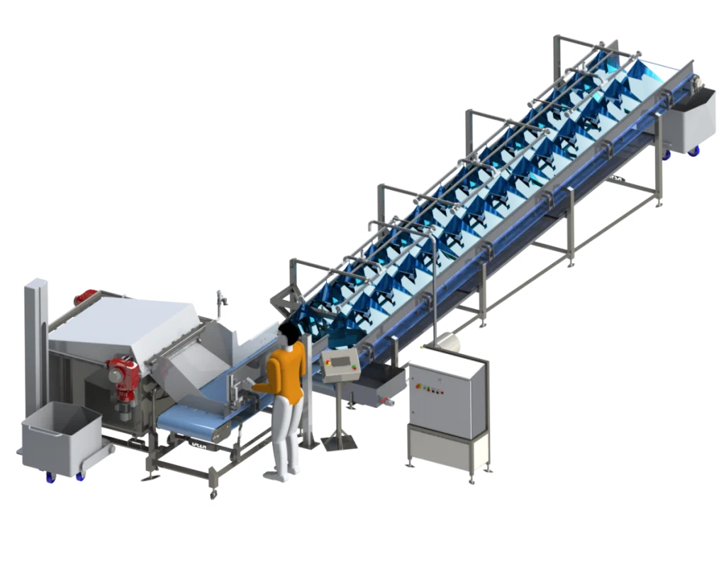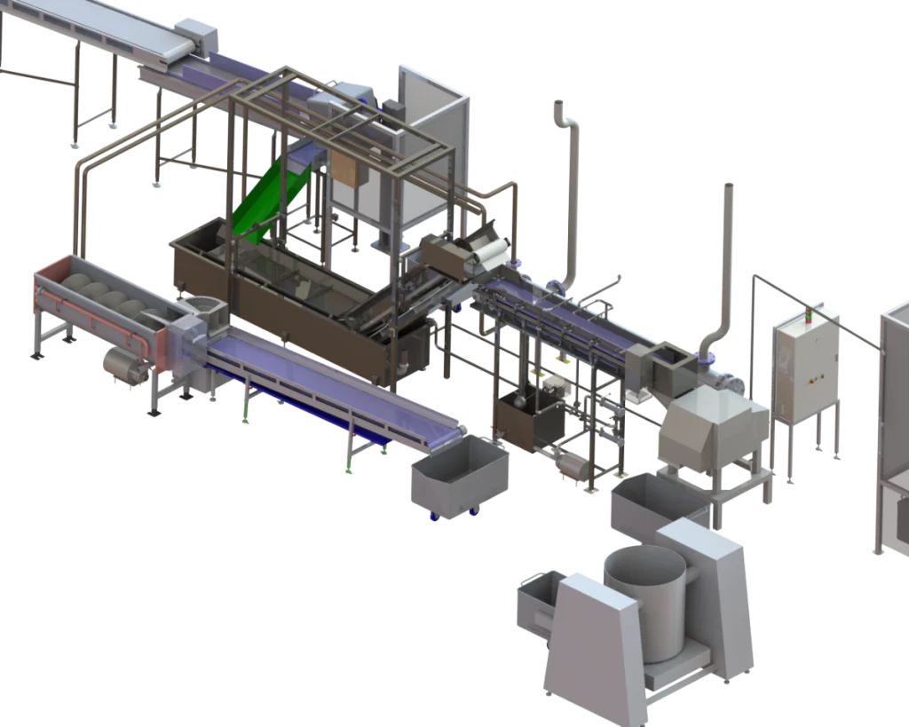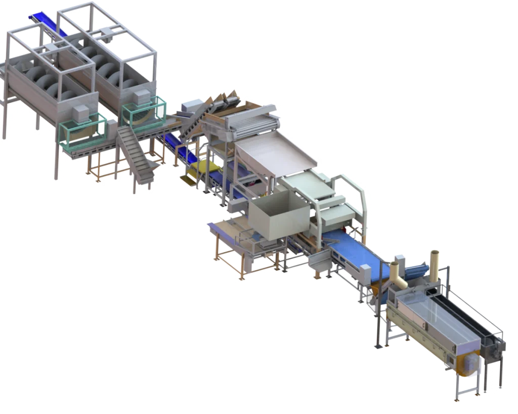 Ligne de lavage calibrage ébouttage tronçonnage pelage triage des légumes