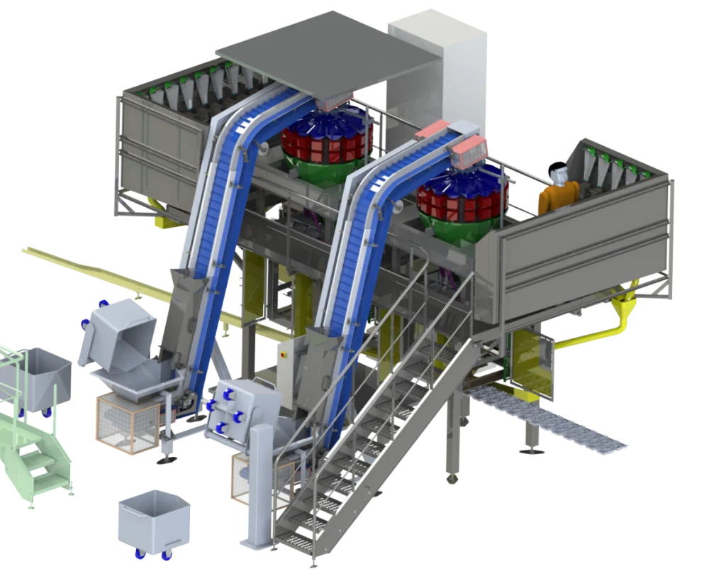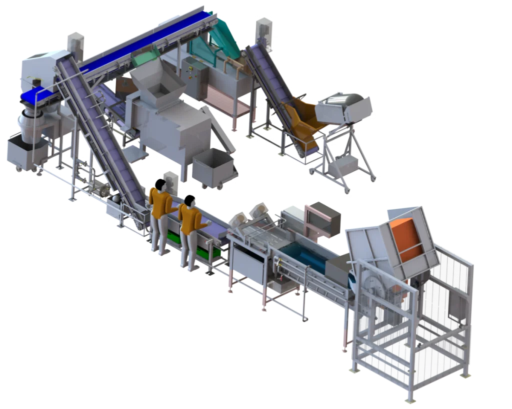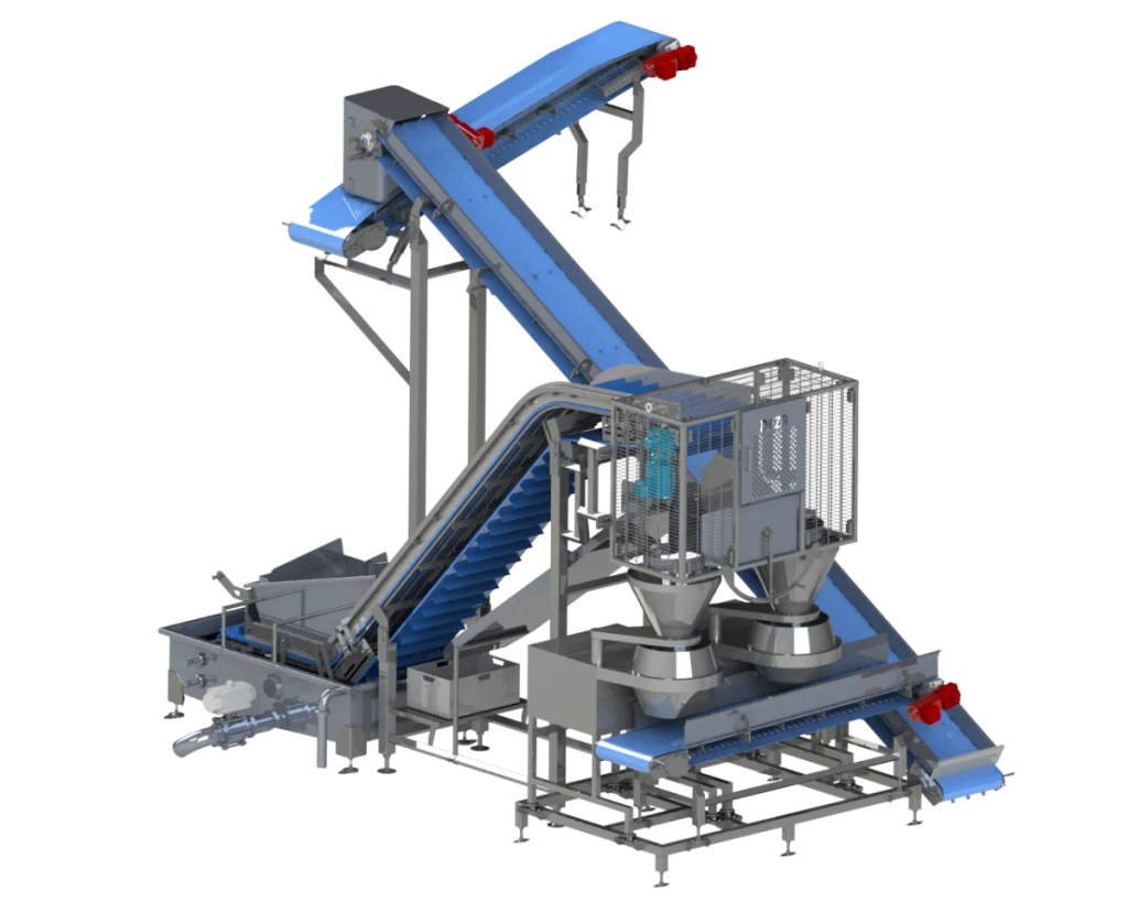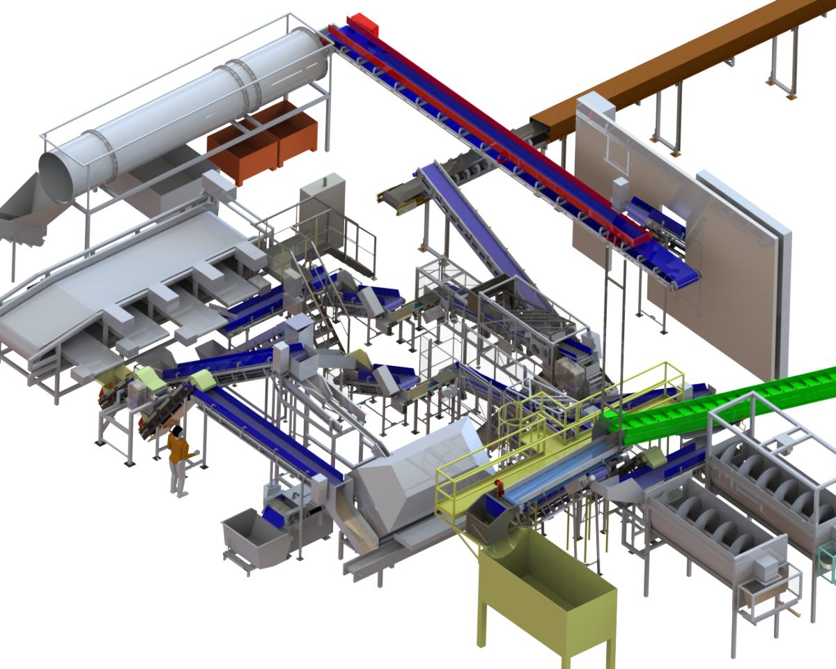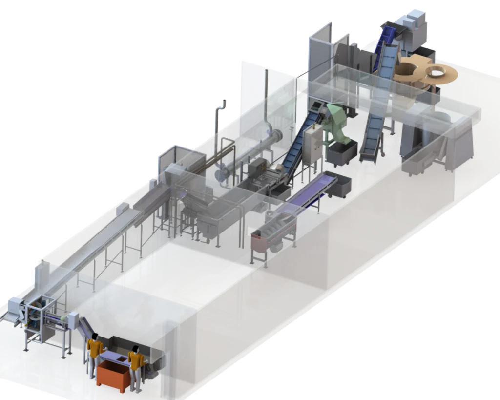 Ligne de lavage calibrage ébouttage tronçonnage pelage triage des légumes