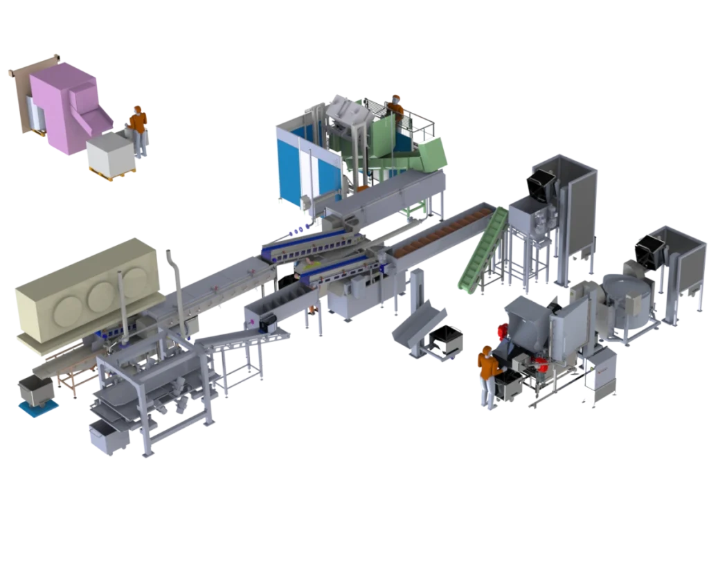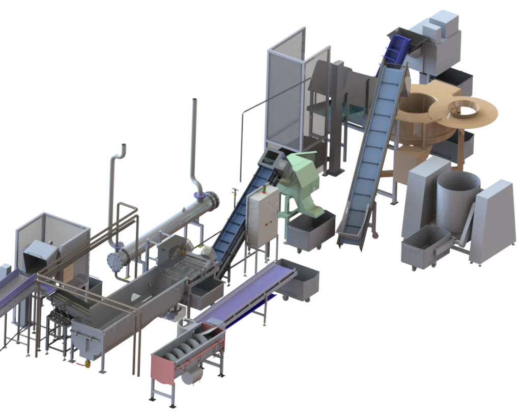 Ligne Calibrage, Ebouttage, Tronçonnage, Pelage, Tri