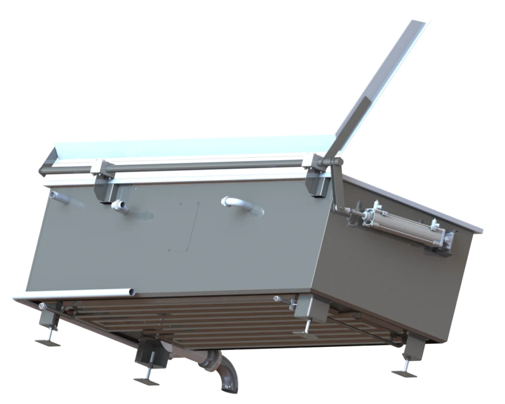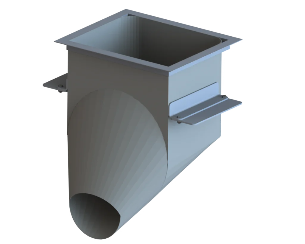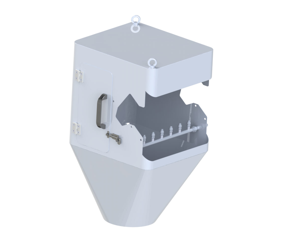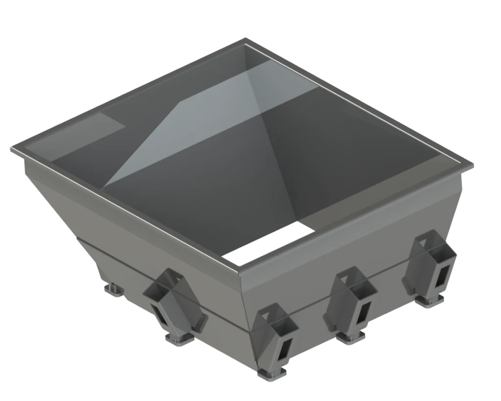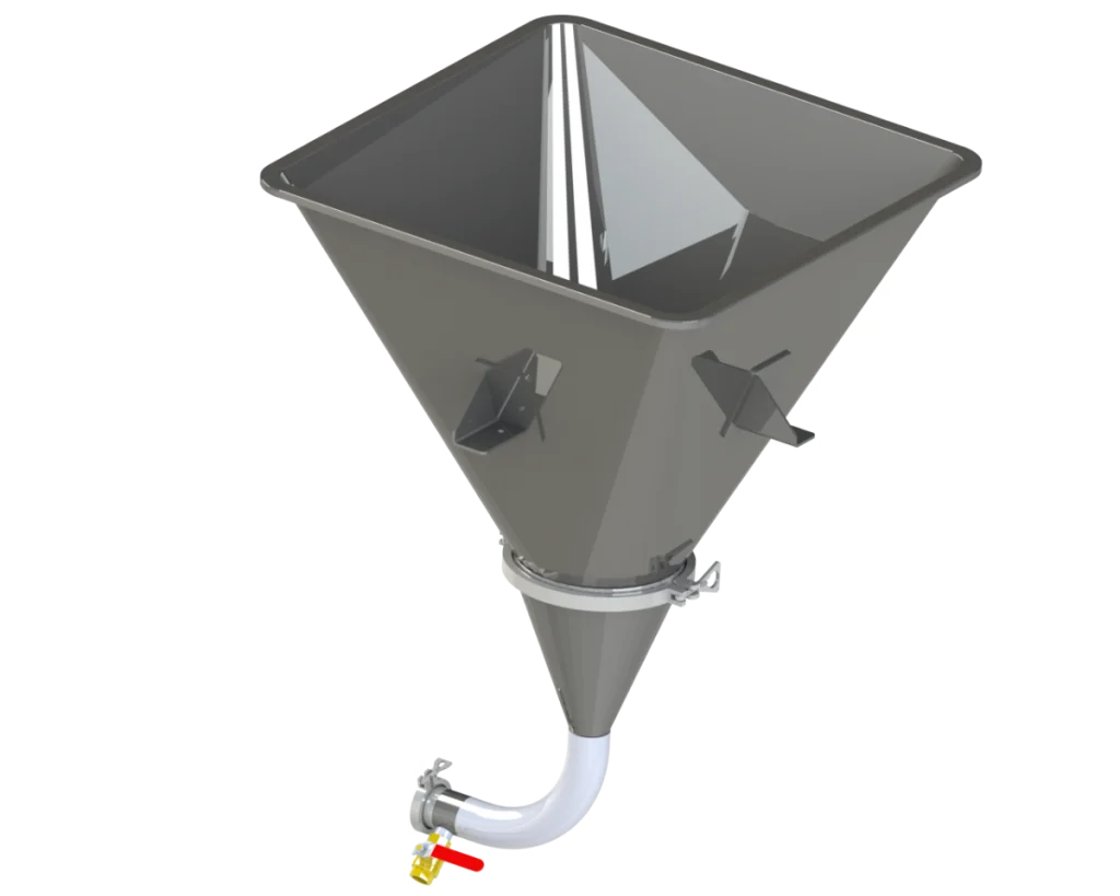 Trémie rond-carré avec couvercle équipé d’une assistance au levage