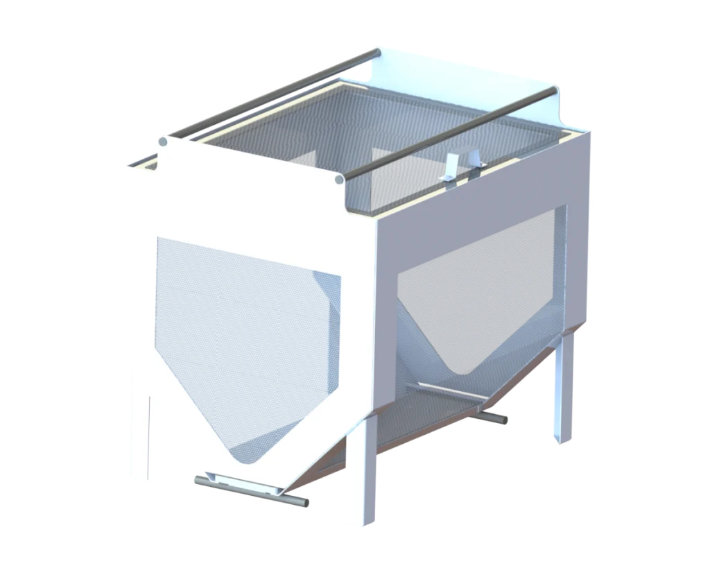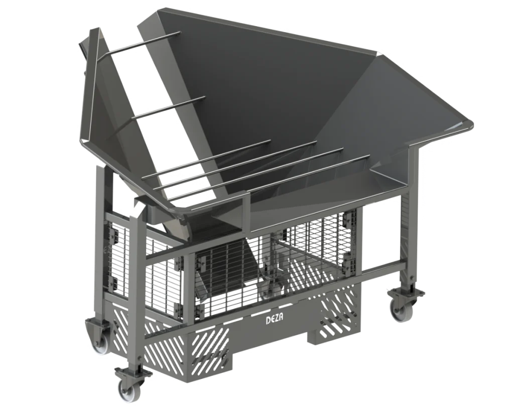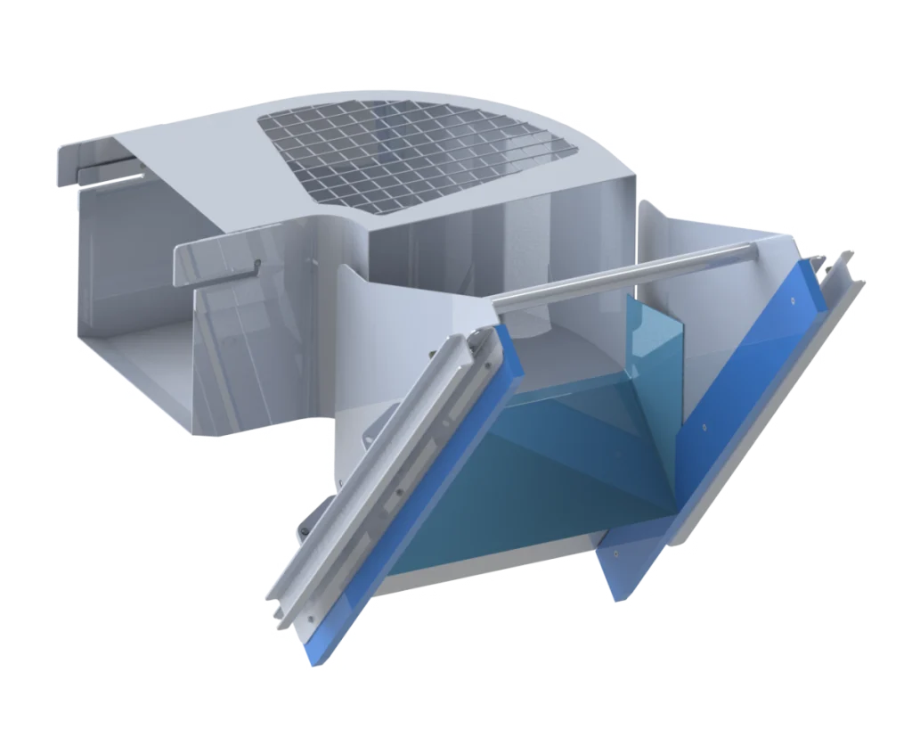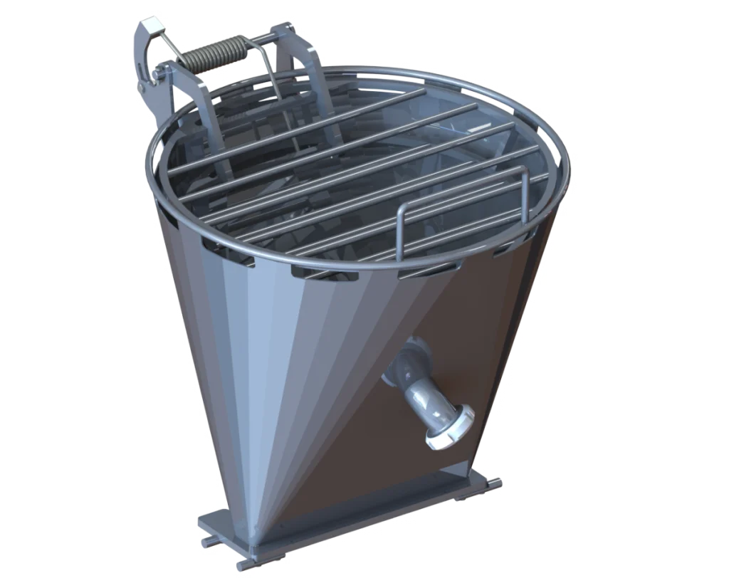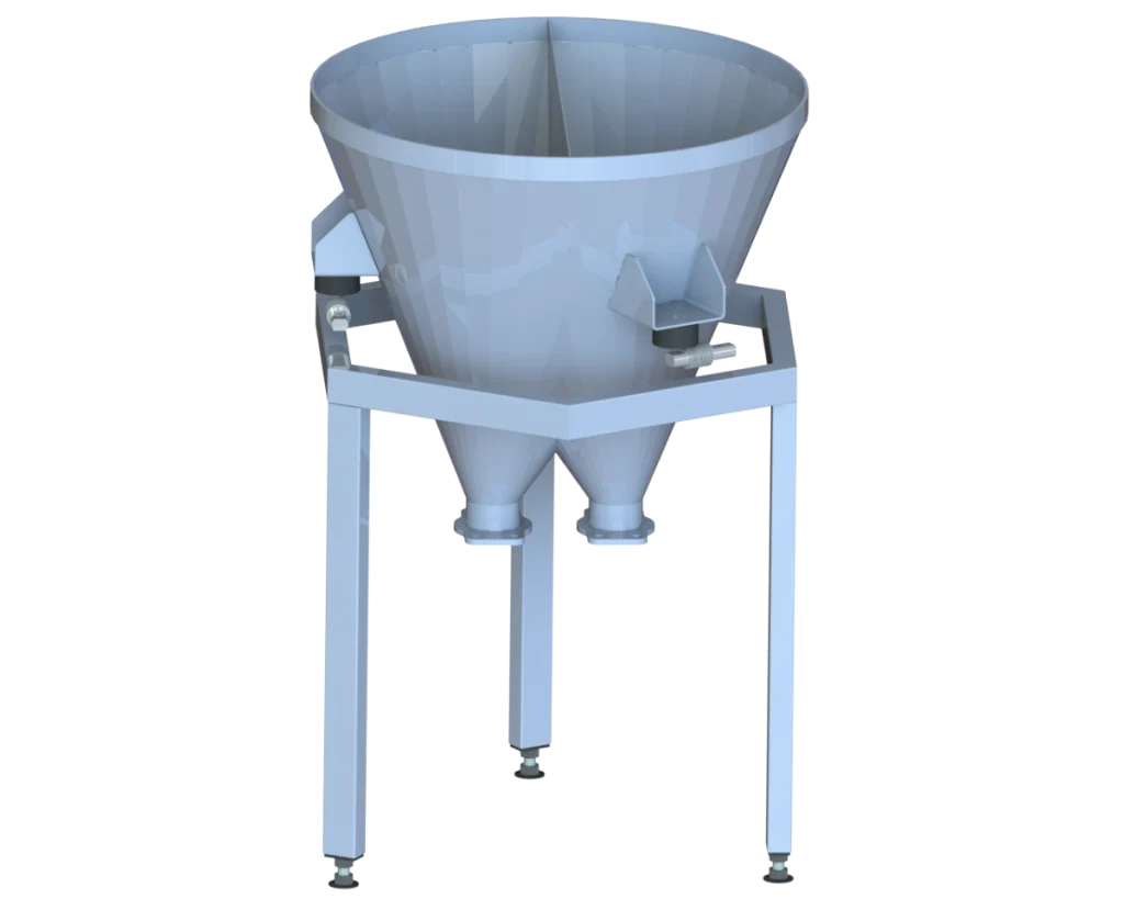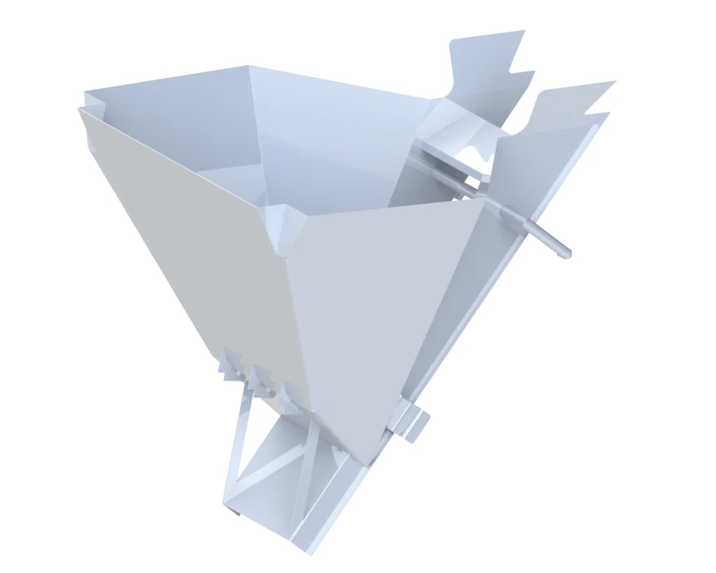 Trémie rond-carré avec couvercle équipé d’une assistance au levage