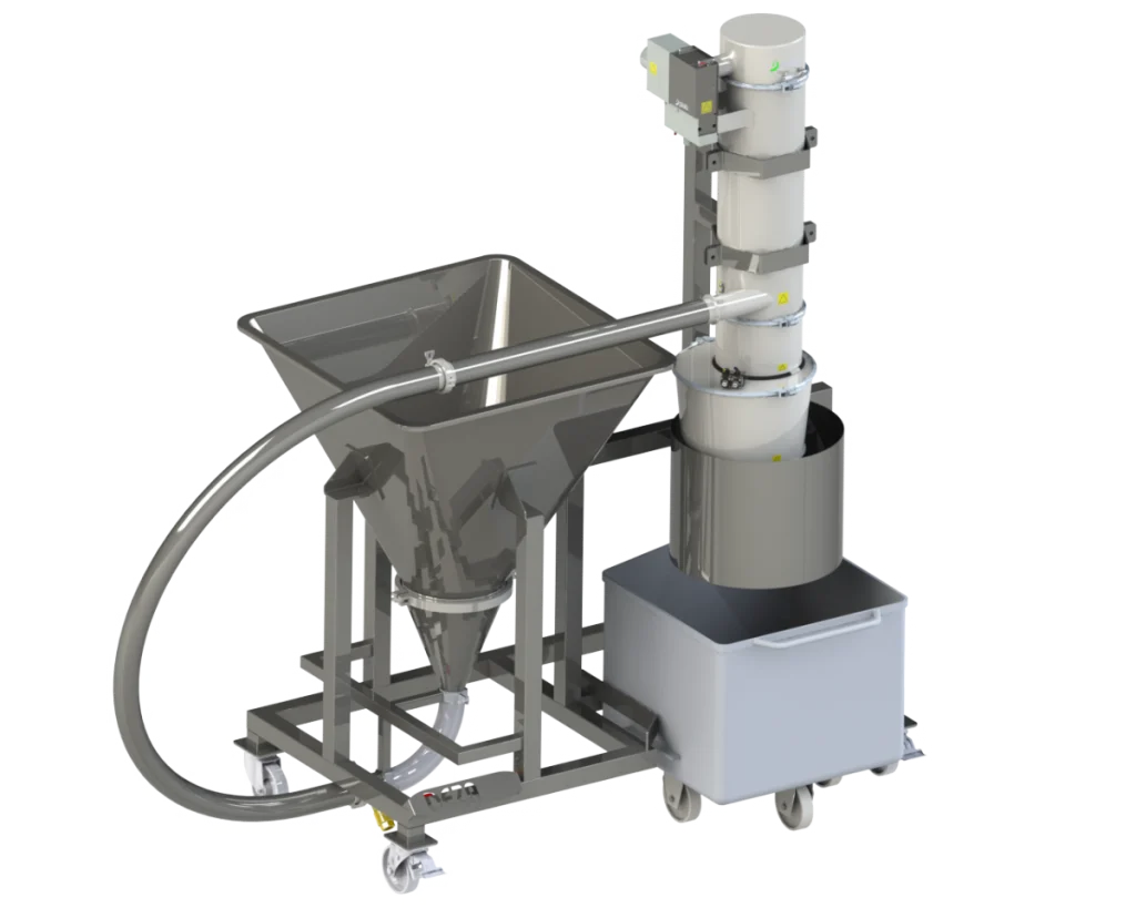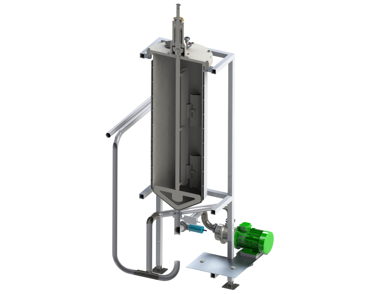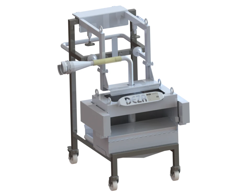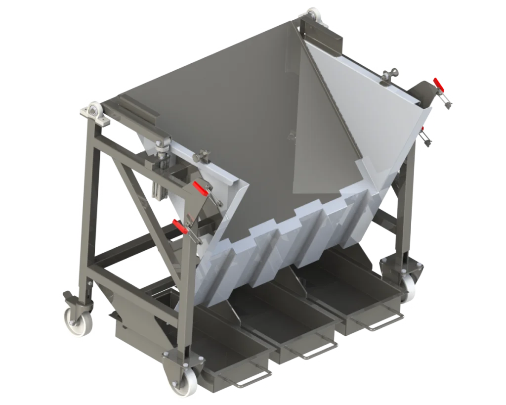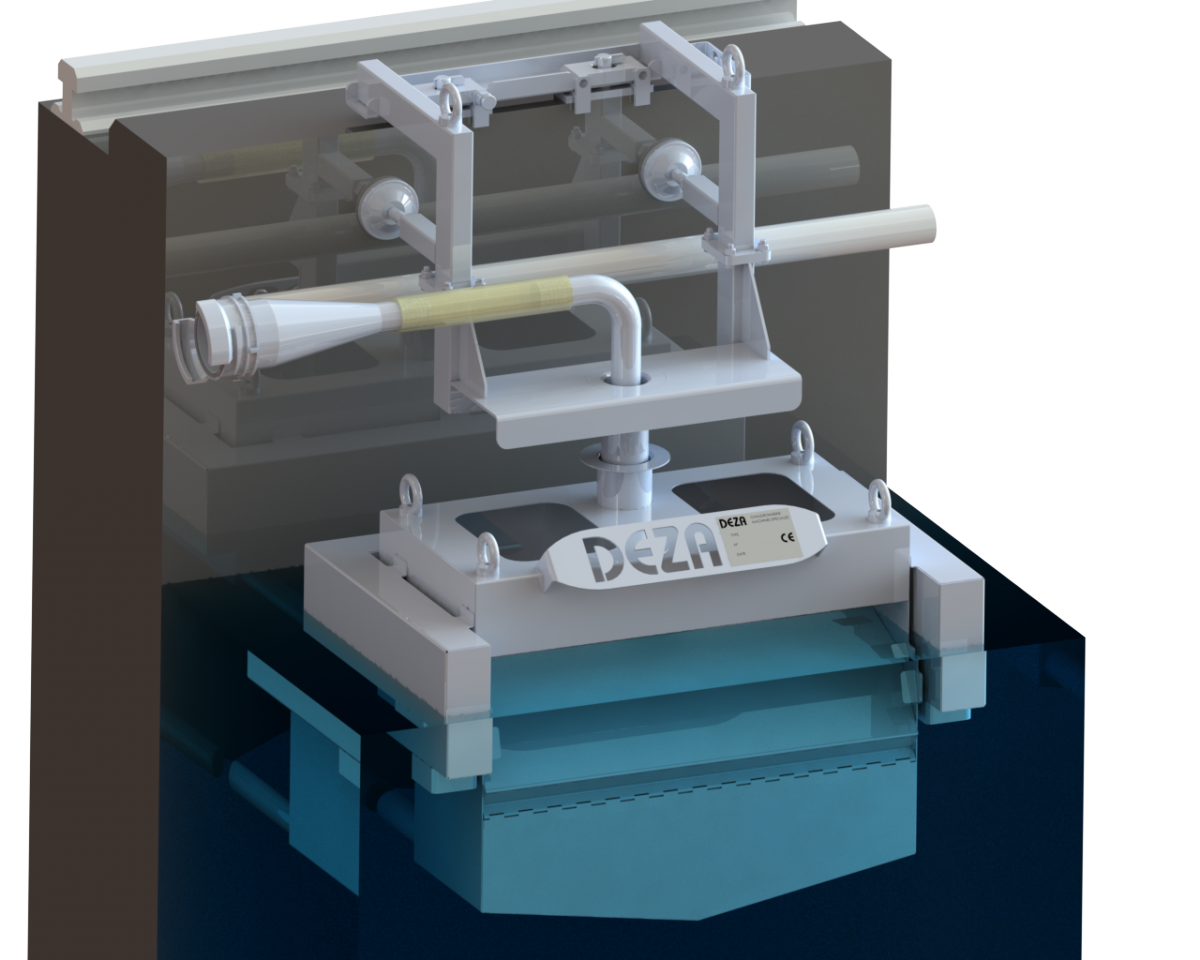 Trémie rond-carré avec couvercle équipé d’une assistance au levage
