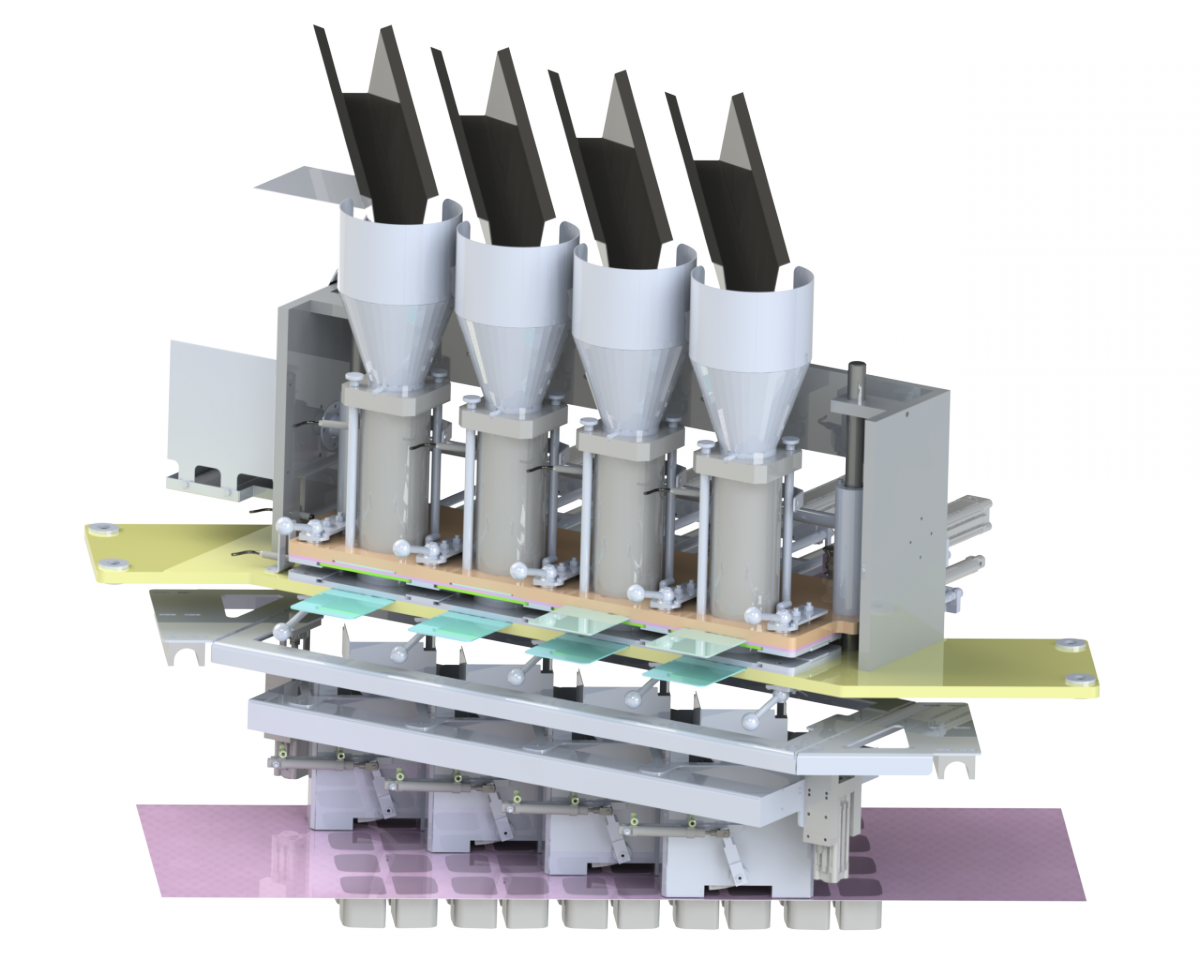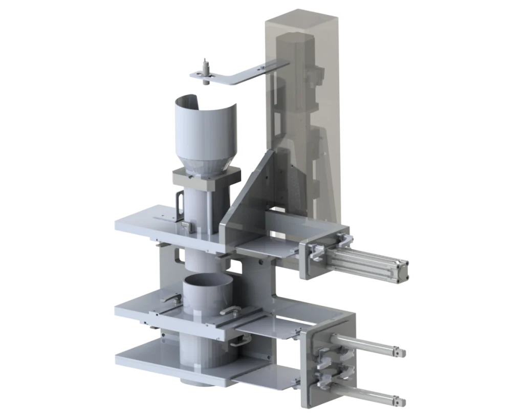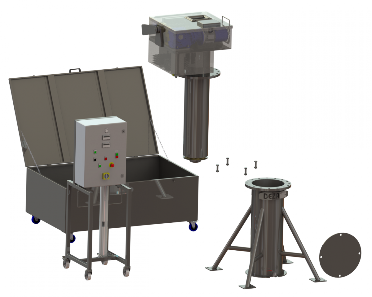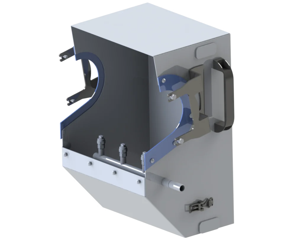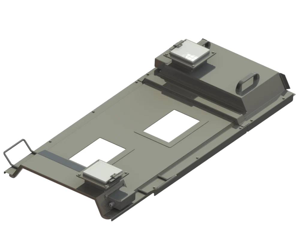 Trémie rond-carré avec couvercle équipé d’une assistance au levage