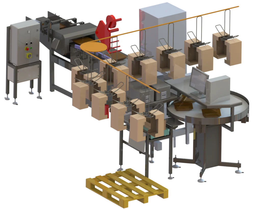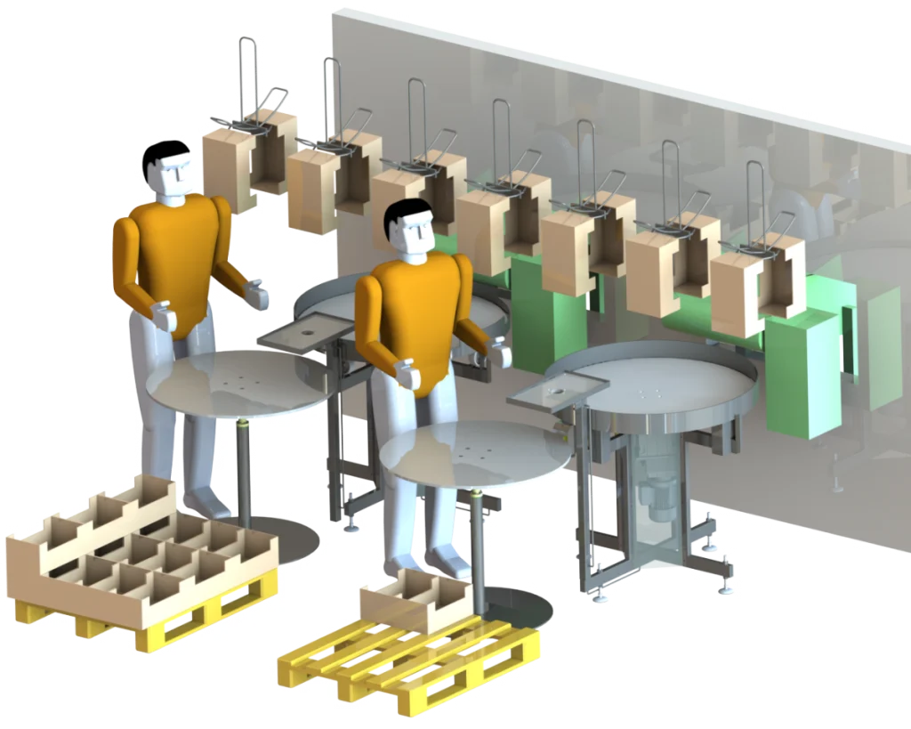 Poste de travail ergonomique en conditionnement et étiquettage de cartons